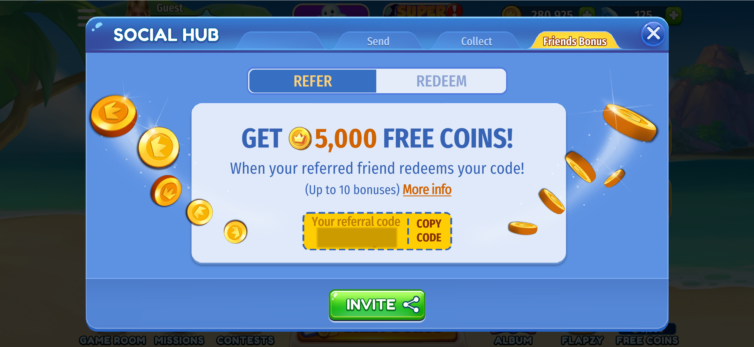 When your friend joins and redeems your code, you get 5,000 coins!