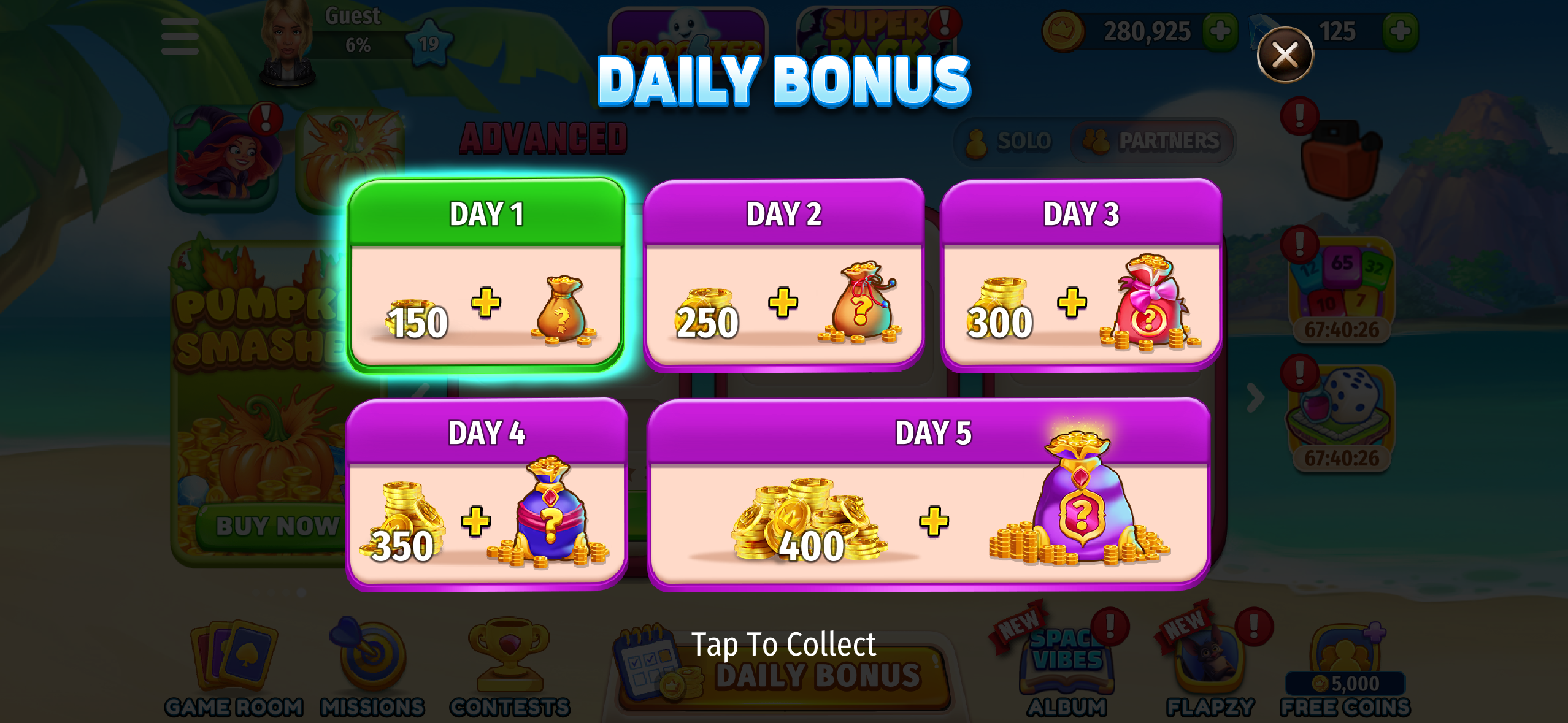 Collect your Daily Bonus every 4 hours.